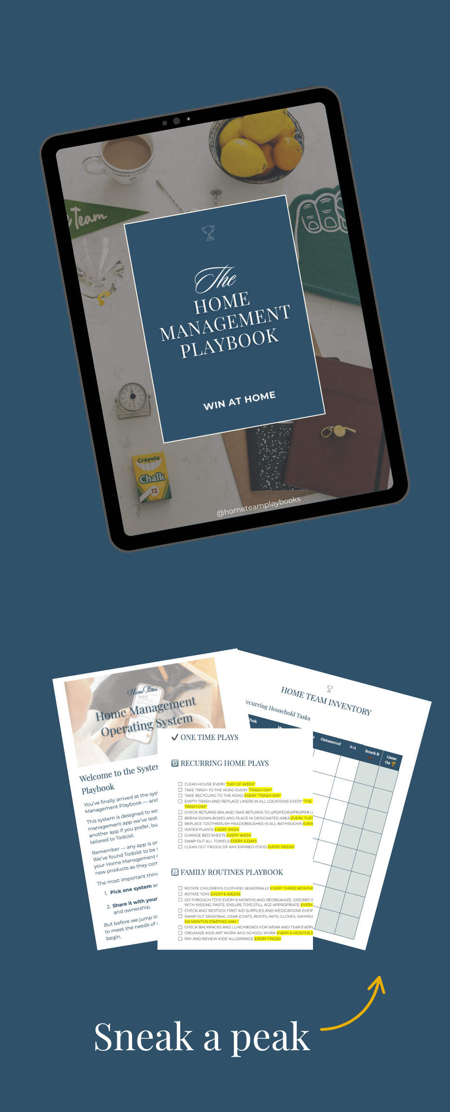 The Home Management Playbook is a step-by-step blueprint for creating our signature home management operating system that helps families create clarity, share responsibility, and finally get margin back.